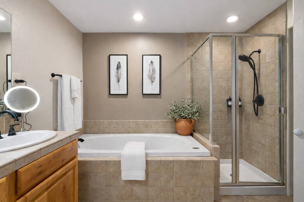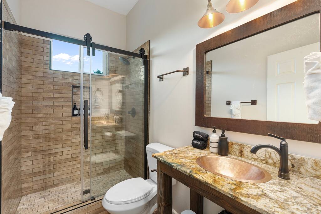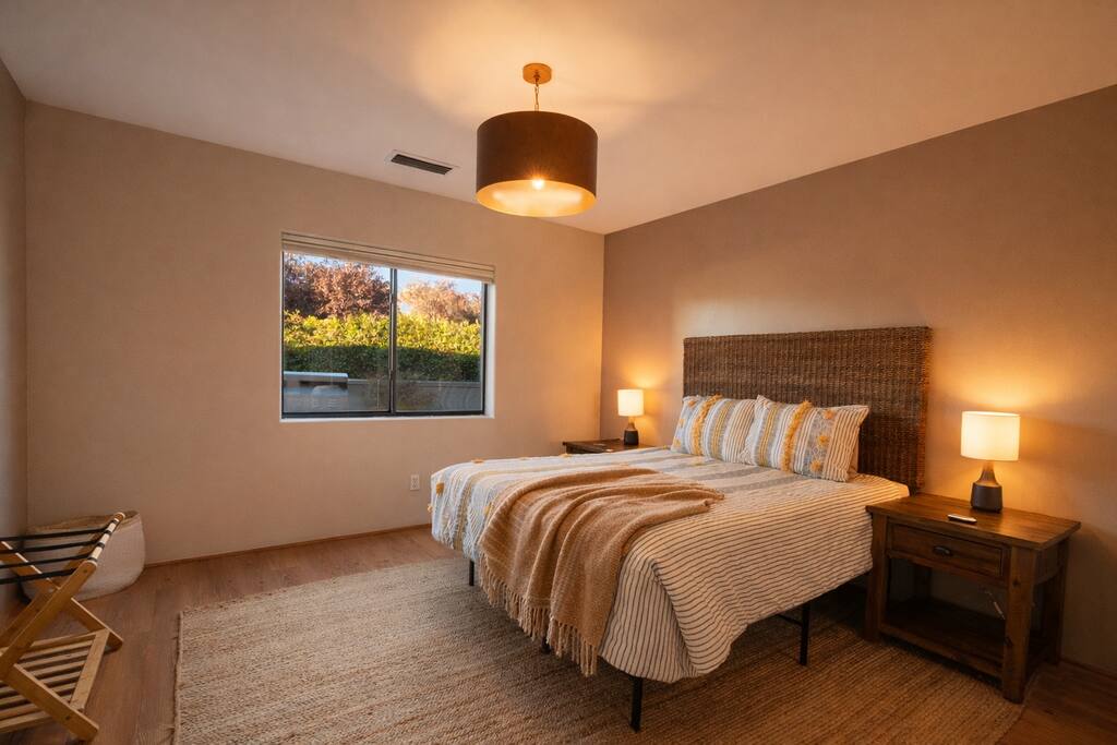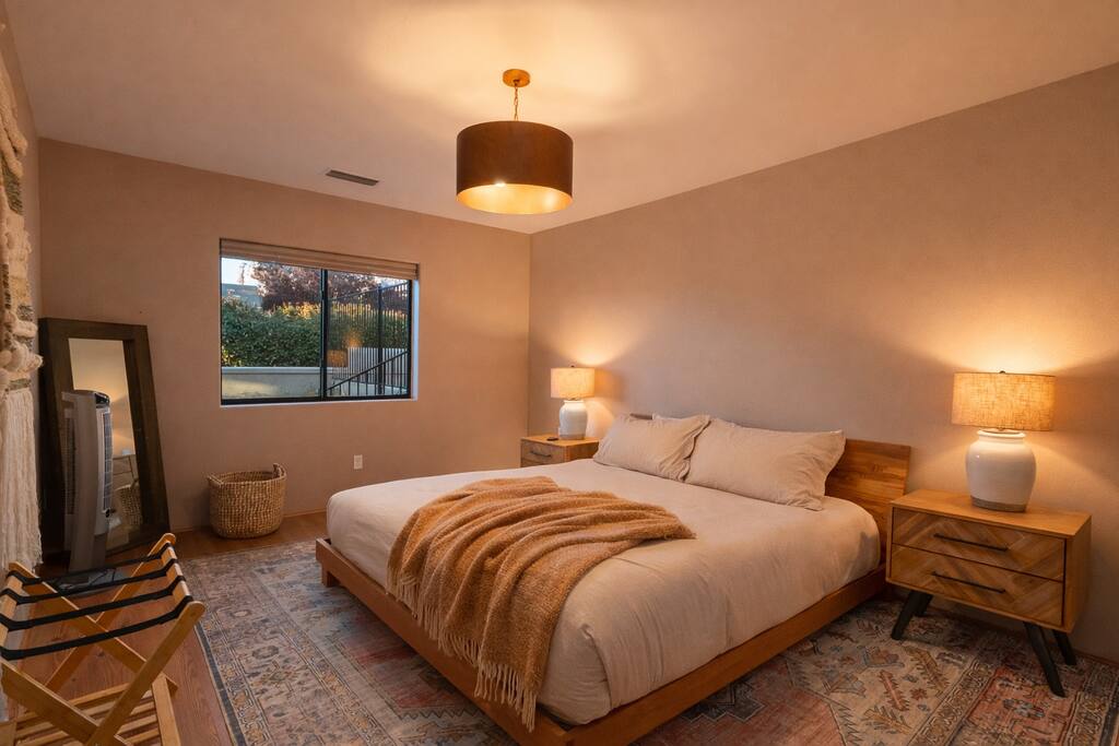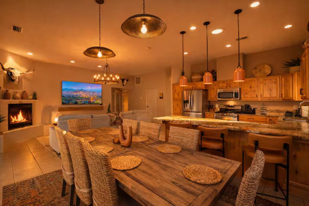 • Luxe 3BD/2BA 2,200 sq. ft. single level Sedona retreat w/ stunning red rock views (see "6BD/3BA" listing to rent all 6BD) • Year-round swimming pool (heating optional, $50/night), spa (no fee), poolside fire-pit, & indoor fireplace • 5 ultra-comfy beds (2 king, 1 queen, 2 twin XL), & luxe dog bed/feeding station • BBQ, Billiards, cornhole, Sonos sound, and 2 Smart TVs, coffee machine, fast WiFi • Epic Sedona location (hiking/shopping), Yeti cooler backpack (optional, $40/stay) & binoculars